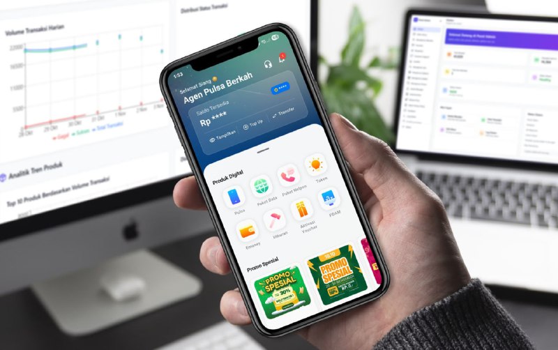 Setelah siap, bagikan APK dan link web kepada agen dan pelanggan. Pantau semua transaksi dan aktivitas secara real-time melalui dashboard lengkap kami.